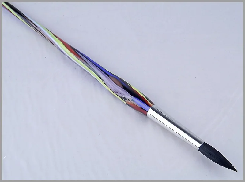 PENNELLO GRANDE IN VETRO D.I MURANO CON SETOLE SCURE. Lunghezza cm. 32 c.a