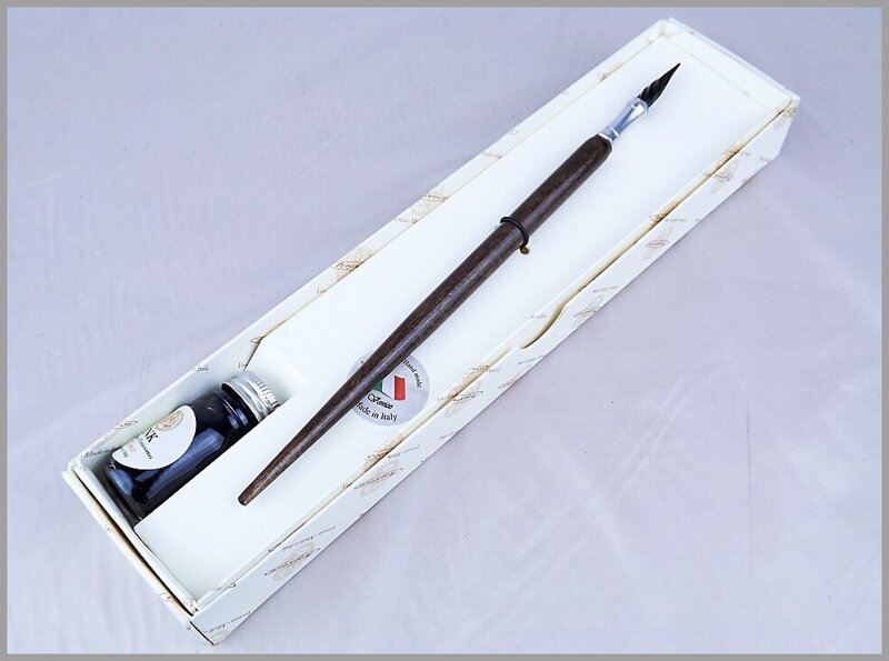 WOOD AND METAL PEN SET WITH INTERCHANGEABLE GLASS NIB.