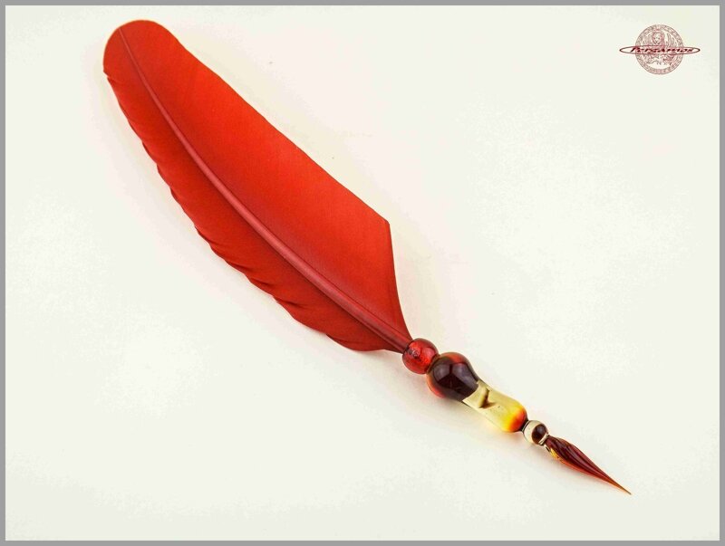 FEATHER SET WORKED IN GLASS WITH SLIDING GLASS NIB